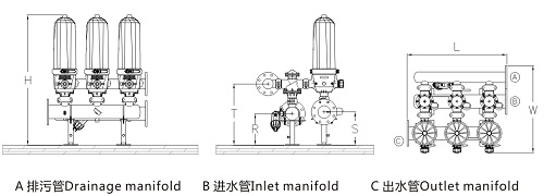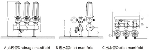 單個(gè)過(guò)濾器不能滿足過(guò)水量要求或?yàn)榱税凑盏姆奖恪⒚烙^,而進(jìn)行多個(gè)過(guò)濾器進(jìn)行組裝,實(shí)現(xiàn)組合過(guò)濾系統(tǒng)。