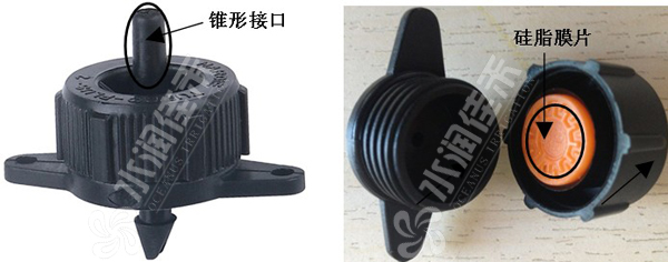 1.借助水流壓力使硅脂膜片改變出水口斷面,調(diào)節(jié)流量,使出水穩(wěn)定。2.壓力補償,長距離鋪設(shè)或壓力波動時保持恒流。