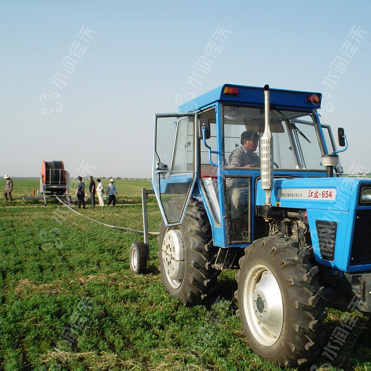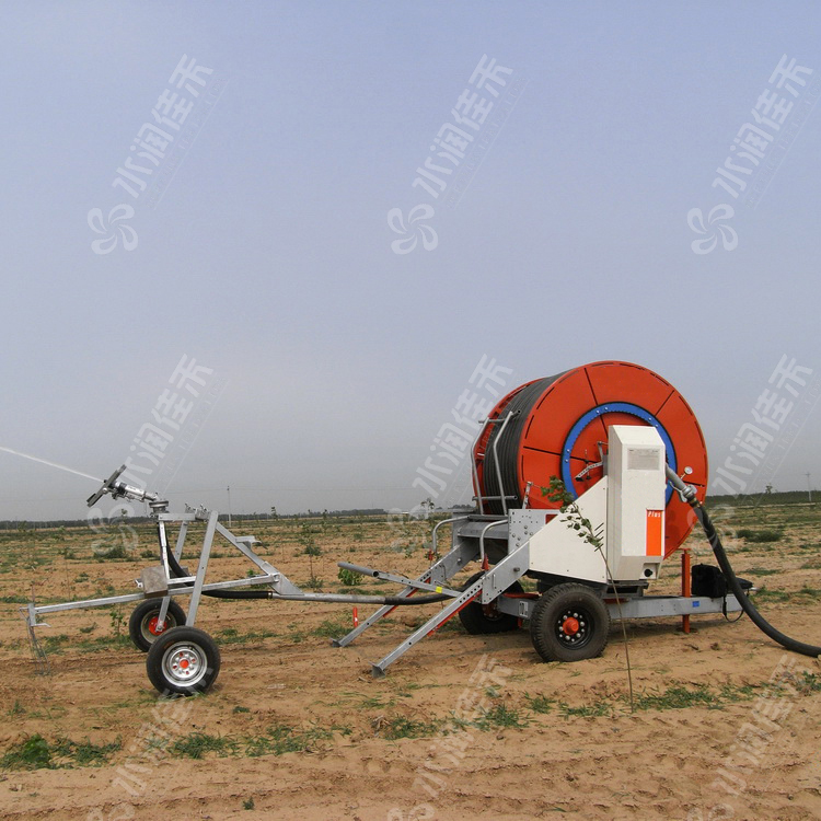 卷盤式噴灌機(jī)又稱絞盤式噴灌機(jī),是一種將牽引PE管纏繞在絞盤上,利用噴灌壓力水驅(qū)動水渦輪旋轉(zhuǎn),經(jīng)變速裝置驅(qū)動絞盤旋轉(zhuǎn),并牽引噴頭車自動移動和噴灑的灌溉設(shè)備。它具有移動方便、操作簡單、省工省時、灌溉精度高 、節(jié)水效果好、適應(yīng)性強(qiáng)等優(yōu)點,能有效地提供作物所需要的水分,提高產(chǎn)量。