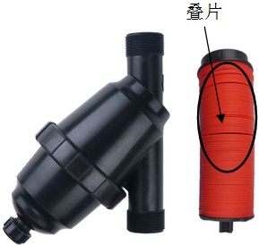 疊片過濾器主要用于灌溉水質(zhì)較好或當(dāng)水質(zhì)較差時(shí)與其他形式的過濾器組合使用,作為末級過濾設(shè)備。由于疊片過濾器儲(chǔ)污能力較離心、砂石過濾器差,需經(jīng)常反沖洗。